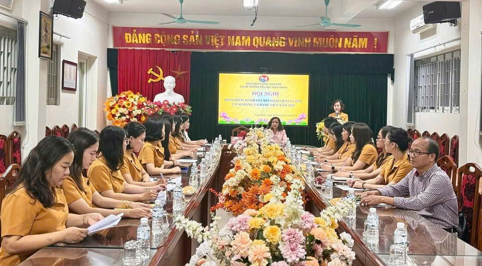 Thực hiện Kế hoạch số 09-KH/ĐU ngày 25/11/2025 của Đảng uỷ phường Long Biên về việc kiểm điểm, đánh giá, xếp loại chất lượng đối với tổ chức đảng, đảng viên và tập thể, cá nhân cán bộ lãnh đạo, quản lý năm 2025, vào 17h15 ngày 03/12/2025, Chi bộ Trường Tiểu học Thạch Bàn B đã tổ chức thành công Hội nghị “Kiểm điểm, đánh giá, xếp loại chất lượng tổ chức đảng, đảng viên và tập thể, cá nhân cán bộ lãnh đạo, quản lý thuộc chi bộ năm 2025”.