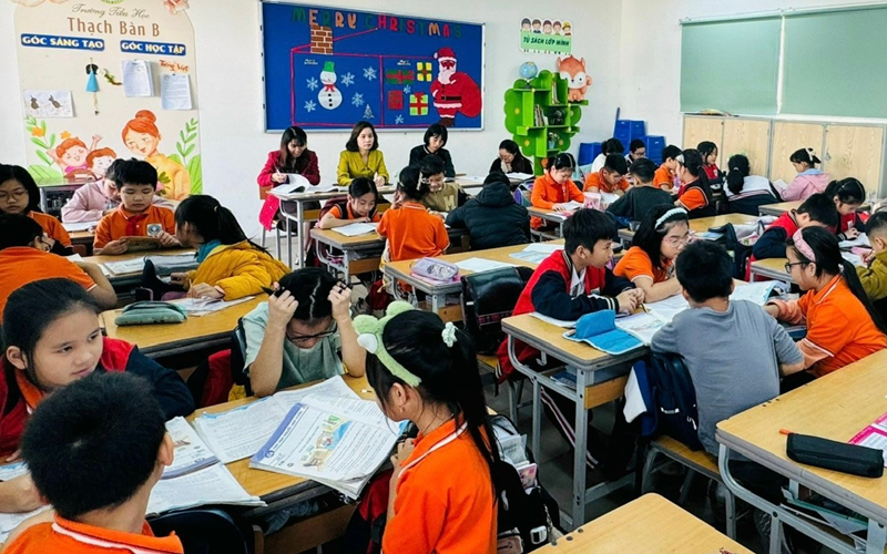 Đến dự tiết chuyên đề có các cô giáo trong Ban giám hiệu cùng các cô giáo giảng dạy khối 4 của nhà trường.