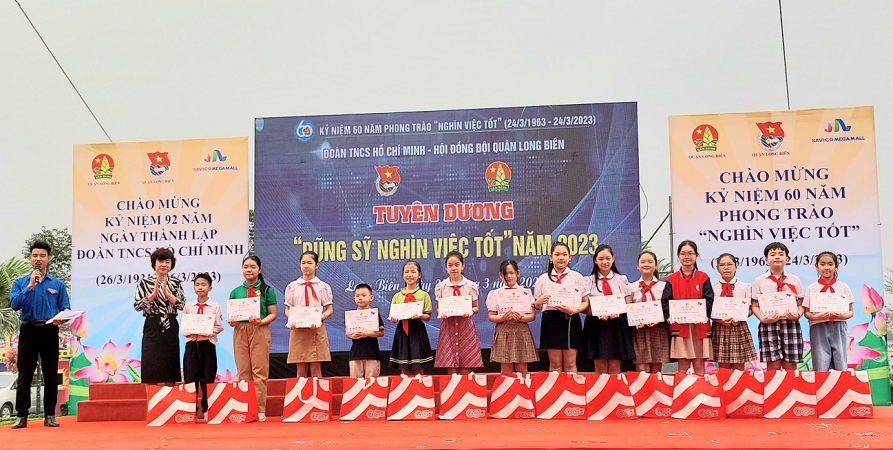 Thực hiện Chương trình Công tác Đội và phong trào thiếu nhi năm học 2022 – 2023, sáng ngày 25 tháng 3 năm 2023, tại sân ngoài trời của Trung tâm Thương mại Savico Megamall, Hội đồng Đội quận Long Biên tổ chức Ngày hội “Thiếu nhi nghìn việc tốt” và Diễn đàn trẻ em năm 2023. Thiếu nhi Liên đội trường Tiểu học Thạch Bàn B đã tích cực tham gia hoạt động ý nghĩa này.